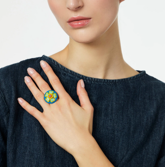 Anello con fiore di perline, cristalli e cabochon Partenope - Multicolor