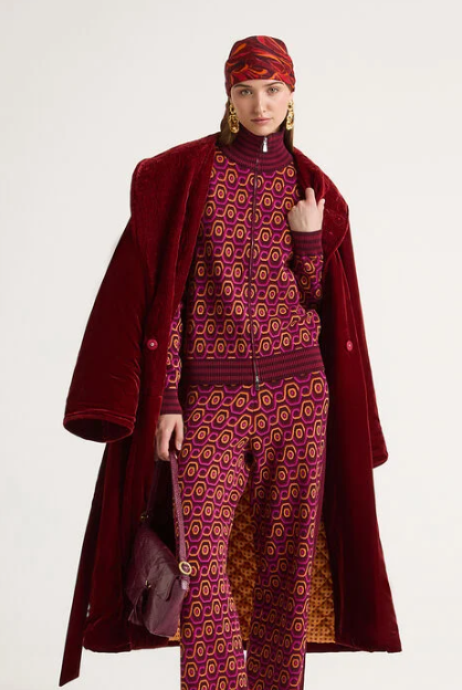 Un capolavoro di stile e comfort: il cardigan Rolling Chain trasforma le tue mezze stagioni con un design audace e affascinante. Realizzato in misto viscosa jacquard a 4 colori su finezza 18, questo cardigan con zip cattura l'attenzione con geometrie vivaci e un'armonia cromatica senza pari. La struttura decisa e la mano calda lo rendono il compagno ideale per le giornate di transizione tra le stagioni. Il collo alto e le bande rigate aggiungono un tocco sportivo-vintage che eleva qualsiasi look. Indossalo con il pantalone coordinato per un'armonia totale, oppure spezzalo con altri pezzi per esprimere la tua personalità stilistica.
