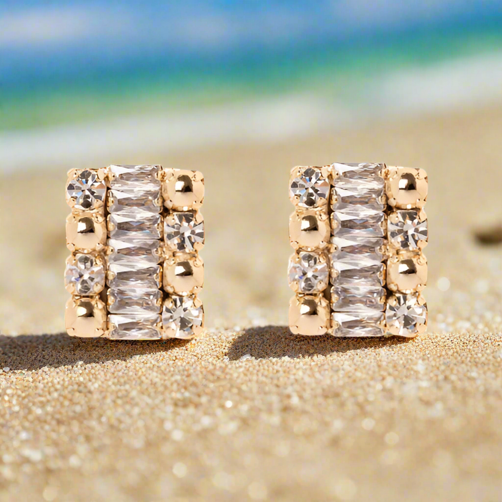 Un tocco di eleganza contemporanea con gli orecchini a rettangolo Babilonia, pensati per chi desidera brillare con stile unico. La linea di cristalli navette, incastonata tra segmenti di mini-boule e strass dalle sfumature raffinate, illumina delicatamente il volto. Perfetti per valorizzare qualsiasi look, combinano armoniosamente il bianco trasparente con l’oro, garantendo un dettaglio sofisticato e versatile. Il logo Sodini sul retro aggiunge un segno distintivo di qualità e autenticità.