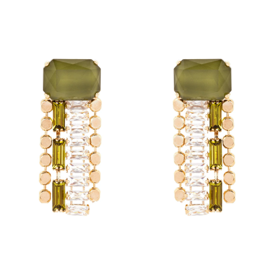 Questi orecchini Semira sono l’accessorio perfetto per un look elegante e raffinato. Il cristallo cromatico verde olivina sostiene una delicata frangia a due catene, arricchita da fili centrali con cristalli e zirconi brillanti che donano luce al viso. Ideali per occasioni speciali o per un tocco di fascino quotidiano, sono impreziositi dal logo Sodini sul retro, simbolo di qualità e stile. Una scelta preziosa per valorizzare ogni tuo momento con grazia e luminosità.